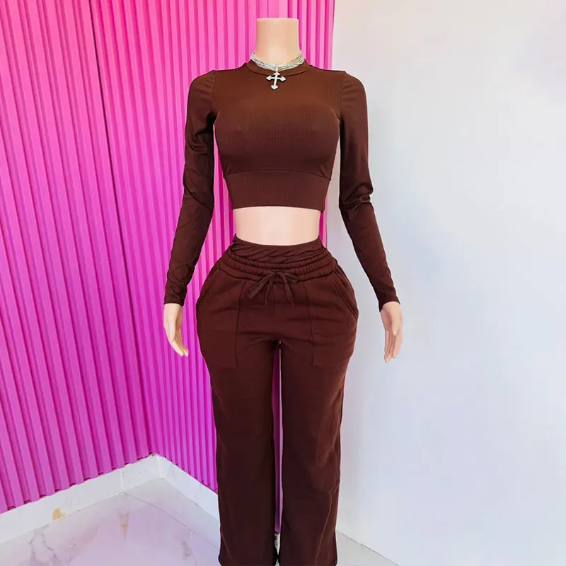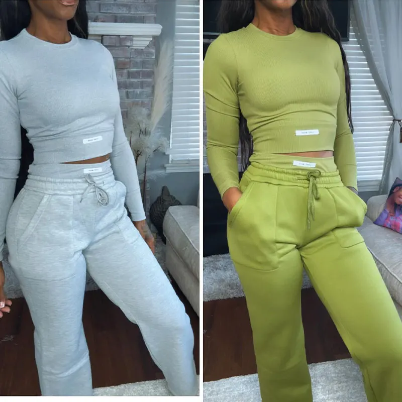 OEM High Quality Women's Daily Wear Crop Top Baggy Sweatpants Set Custom Logo Double-Waisted Knit Cotton-Made Huili Manufacturer